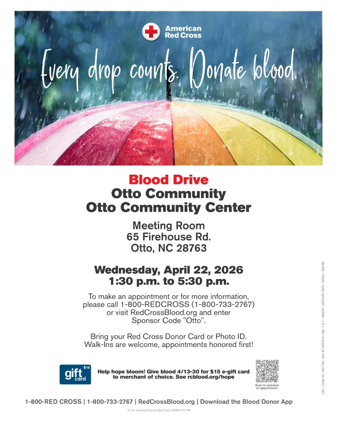 April 22 - Red Cross Blood Drive - 1:30 to 5:30 PM